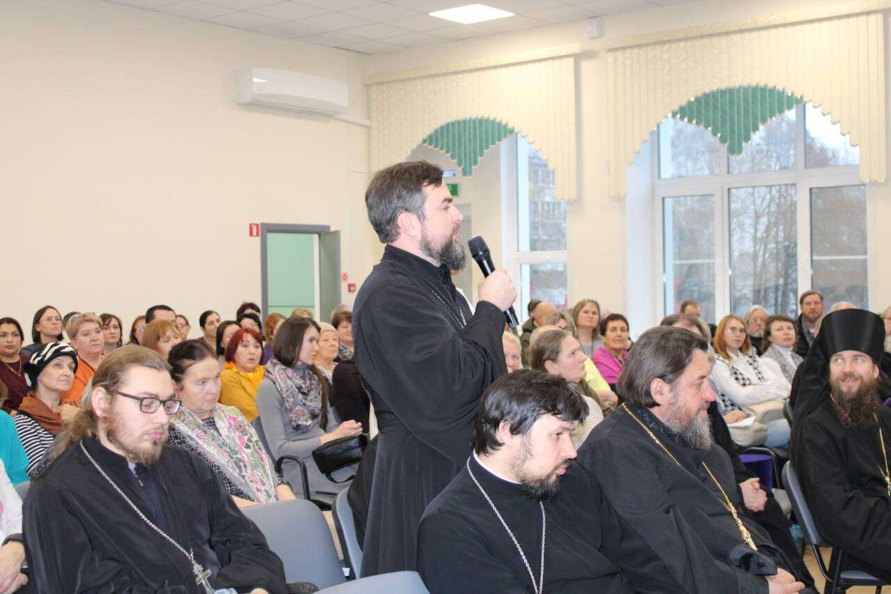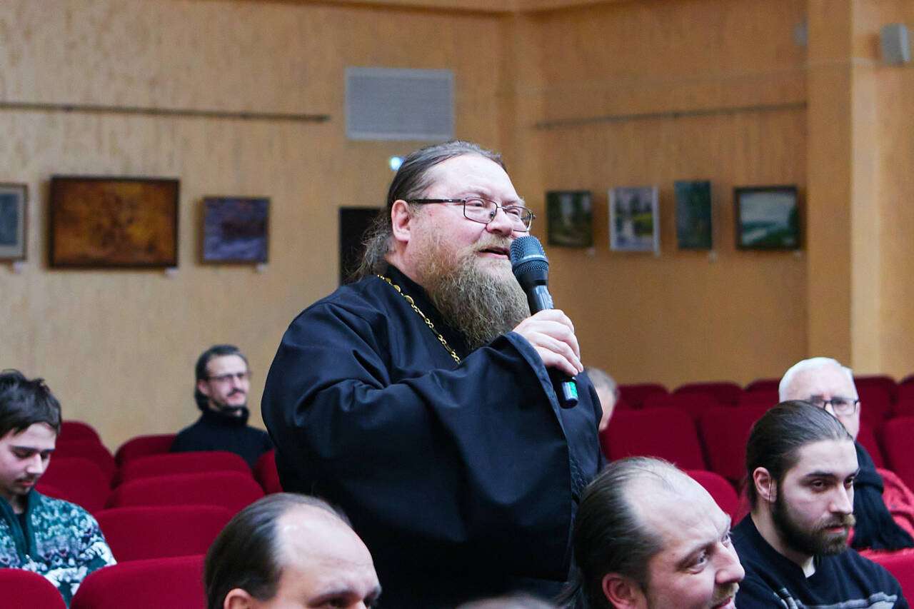 Модератором на встрече выступил благочинный Шиловского округа протоиерей Владимир Свиридов. Он представил гостя собравшимся в зале.