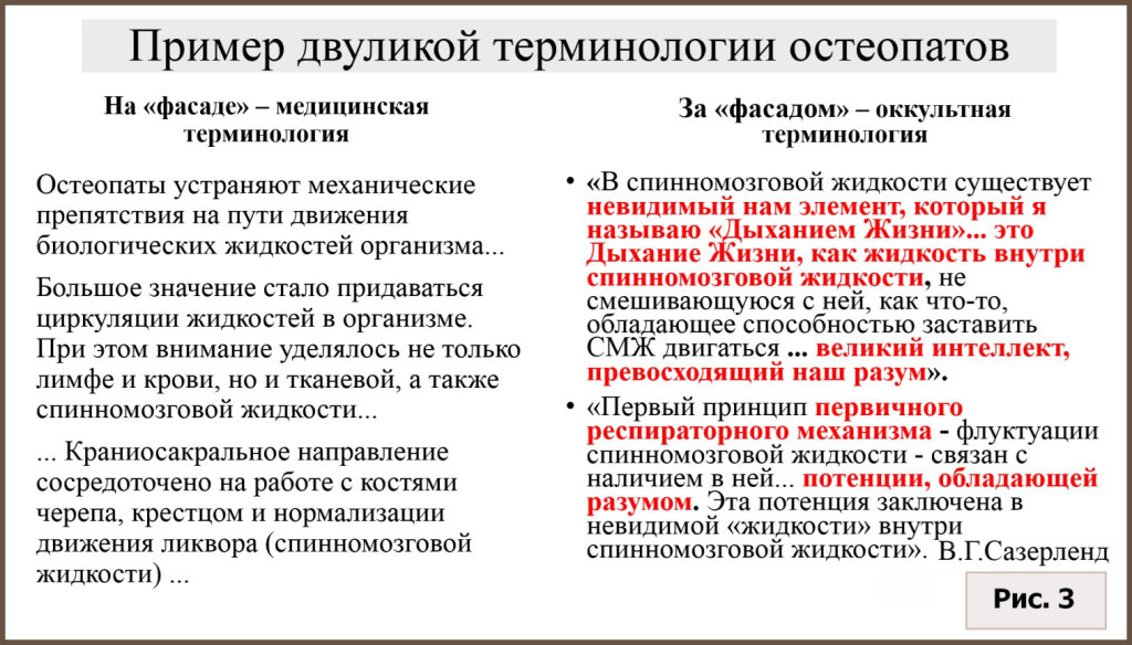 В связи с упомянутыми концепциями и практиками остеопатов, которые никак не вписываются в рамки науки, коснемся важной темы – эзотерического разрыва в информации об остеопатии. Вот как описывают эту «терминологическую катастрофу» сами остеопаты: