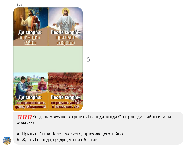 Так сегодня может начинаться путь человека не в церковную общину, а в закрытые чаты, где группа представляется «православной», говорит о любви к Пресвятой Богородице и святым, просит «не выходить из группы ради единства», а затем постепенно вводит ключевую доктрину: второе пришествие уже происходит как тайное воплощение «Сына Человеческого» во плоти, и только потом Христос явится «на облаках». Это — один из узнаваемых маркеров учения так называемой Церкви Всемогущего Бога (CAG).