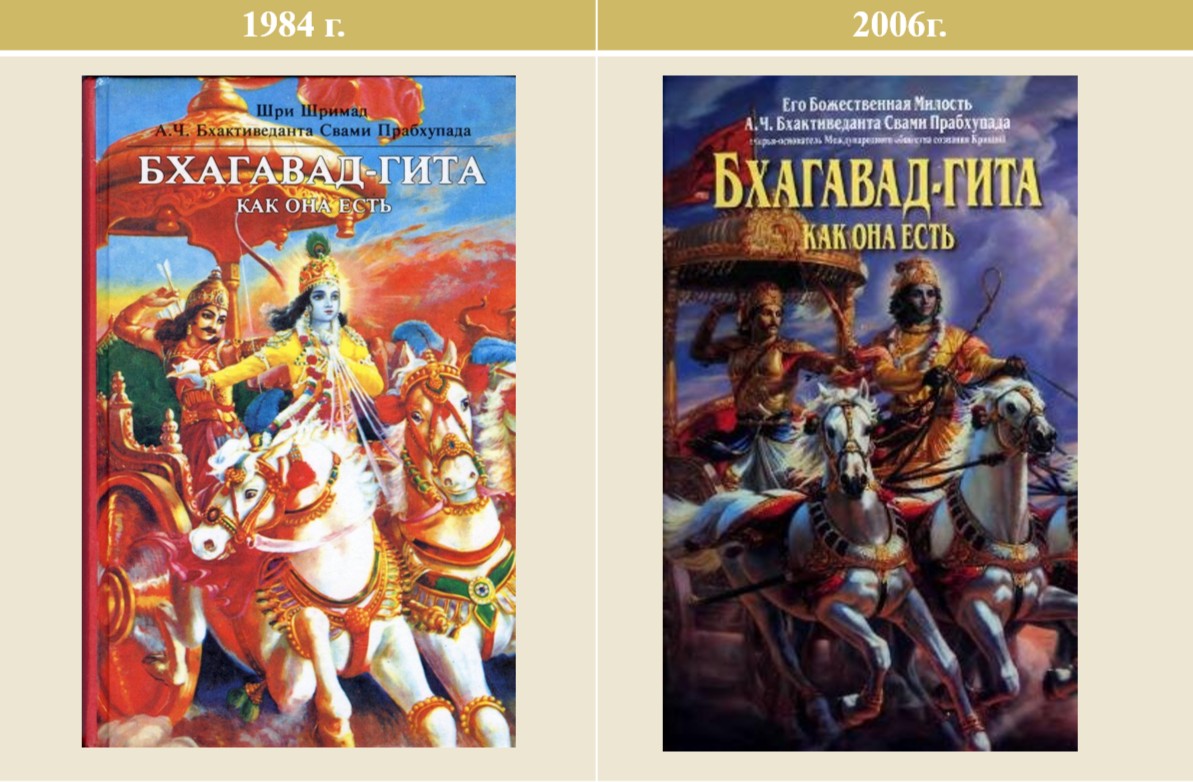 Обложки книг «Бхагавад-гита как она есть» 1984 г. и 2006 г. на русском языке